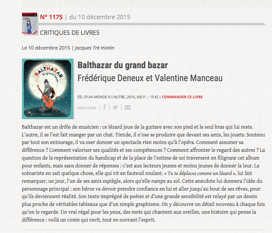 Balthazar du grand bazar est pésenté sur Télénantes.