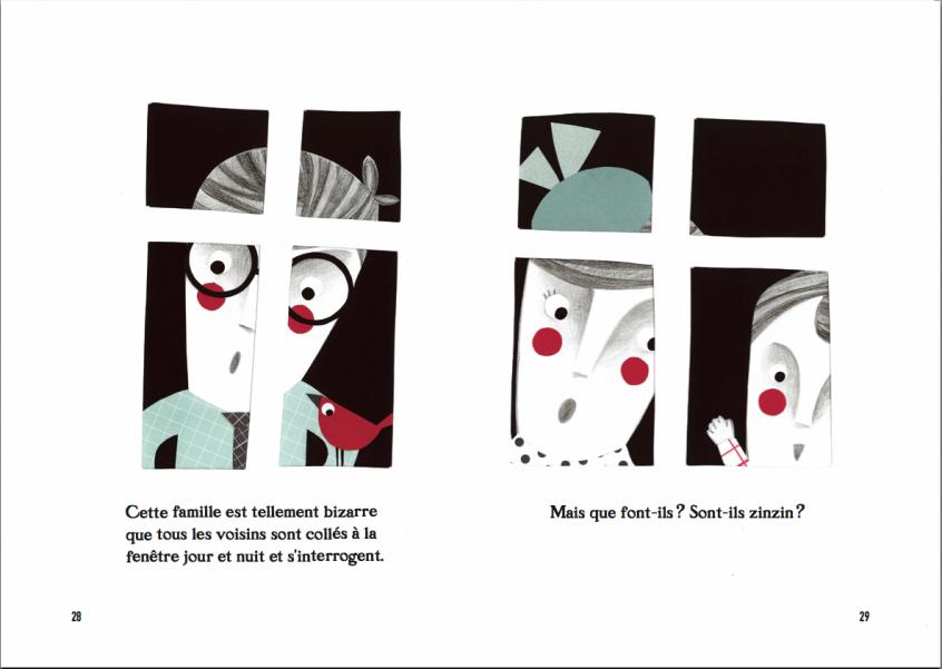 Les voisins n'en reviennent pas : Léo fait des bonds, Léonie marche sous l'eau, Clélia porte des chaussettes-trompettes, Maman tricote des chaussons pour les poules, bref cette famille Bizarre est vraiment bizarre... même si chacun se trouve parfaitement normal ! C'est l'histoire que raconte aux petits enfants Laurie Cohen, dans la joie et la pétulance pour chasser les préjugés, sur de jolis dessins en deux couleurs très stylisés de Kristel Arzur. En montrant des personnages apparemment fantasques, les auteurs explorent sans discours lénifiant le monde des différences et sa belle diversité. La famille Bizarre, par Laurie Cohen et Kristel Arzur, Editions d'un Monde à l'Autre, 11€ chez l'éditeur.