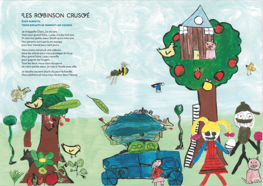 Un album écrit et illustré par 153 élèves de quatre écoles de Loire-Atlantique (école Anatole France à Blain, école Beauregard et La Sensive à Saint-Herblain et école Les Marsauderies à Nantes) dans le cadre d'un projet mené par notre association en collaboration avec l'OCCE 44. Il a concerné des élèves de classe ULIS et de CE2, CM1, CM2.
